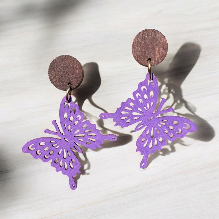 Bloom with joy wearing our playful Butterfly Wooden Earrings!