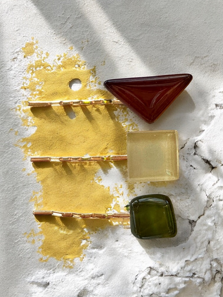 Add a touch of charm to your hair with this minimalist set of three glass Bobby pins.