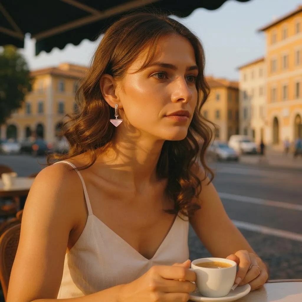 These triangle drop earrings feature a silver finish and vivid pink glass, offering a simple yet striking minimalist style. The bar stud design adds a dash of chic, creating a contemporary classic. Explore our selection of pinks: light, candyfloss and dark pink. Whatever your choice, this pair is a 'go to' essential for trendsetters who love a little edge.