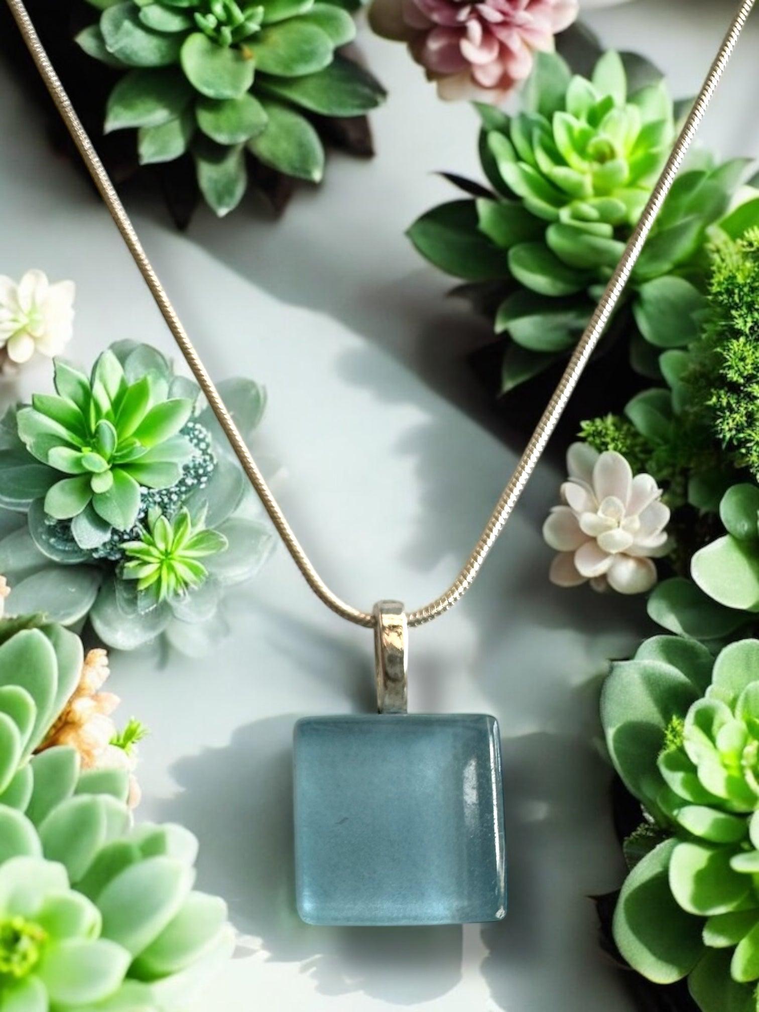 Embrace the simple elegance of our Minimal Square Glass Necklace.
