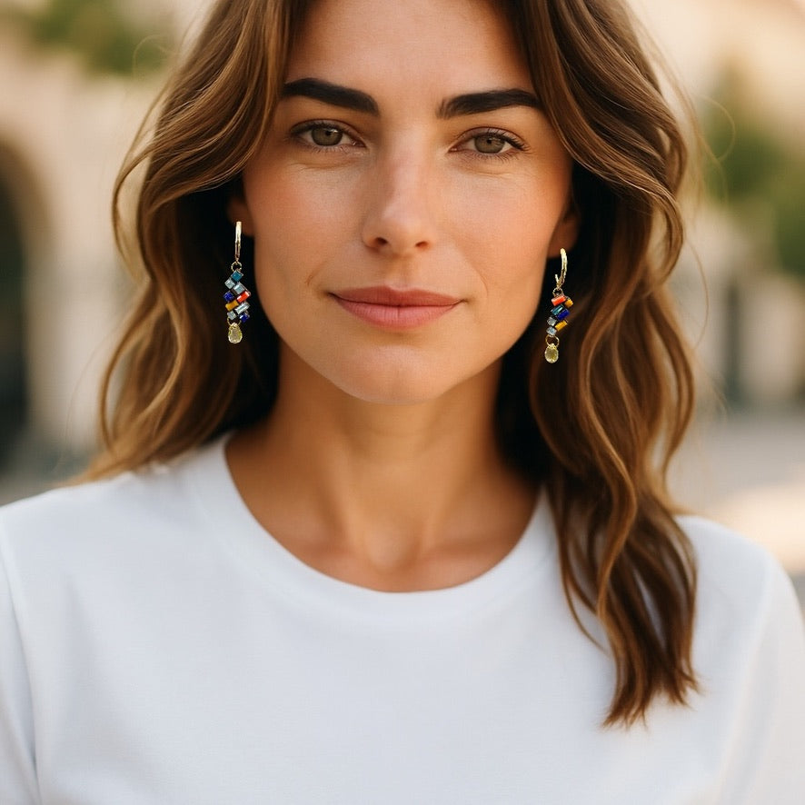 Multicolour Cluster Earrings, with tear drop- Upcycled Ltd Edition